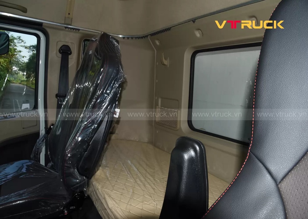 Cabin rộng rãi với 2 ghế ngồi và 1 giường nằm tạo sự thoải mái tối đa cho bác tài khi di chuyển các cung đường dài.
